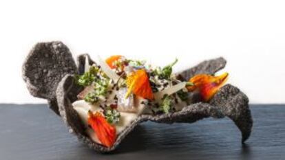 Olleros elabora una cocina bipolar donde cobran la misma notoriedad los pescados que los vegetales, incluidas las algas, relegando las carnes a un segundo plano. Son agradables sus calabacines en tamaño mini con miso; refrescantes los tomates en distintas texturas, y de contrastes marcados el merengue seco con lomo de sardina. Acierta con los guisantes lágrima con percebes a pesar del exceso de caldo de pescado gelatinoso, es magnífica la crema de espárragos helada con camarones, suaves las navajas en sal y muy fina la ensalada de brotes tiernos.