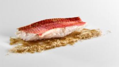 Las chalotas confitadas sobre salsa negra que emulan sepias juegan al trampantojo, y los garbanzos guisados con hierbas y especias ratifican el espíritu zen de su cocina. La sopa de pescado y marisco, la kokotxa de bacalao al pilpil y su salsa de seda o el bonito con jugo de tomate muestran la cara más apacible de esta cocina. El mayor riesgo lo asume con la merluza frita, cabello de ángel y salsa verde, mientras que las carnes ofrecen perfiles cambiantes. El fuagrás atemperado abruma por su cantidad al final del menú; la castañuela de cerdo ibérico con brécol resulta algo insustancial; delicadísima la codorniz con almendras, y equilibrada la molleja de ternera a la manteca negra.