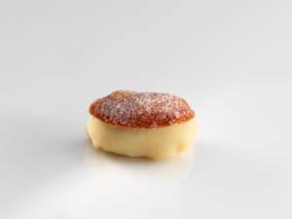 Ha estado varias horas preparando un bacalao al pilpil. Le ha dado por cocinar, “como loco, si pudiera, para todo el vecindario”. “He saboreado el paso a paso como la primera vez que lo vi hacer, a la madre, en el txoko, mi vida a través de esa elaboración”, explica el chef de Nerua, restaurante del Guggenheim. Su cocina recupera esas raíces, a las que añade inspiración de fuera. “Viajar te invita a ver una cultura en su aspecto más puro y, a la vuelta, poder hacer un guiño a tus raíces”. Él fusiona Bilbao con Japón a través de un postre. “Mezclamos un mochi con el bollo mantequilla, que hace feliz a un niño. Es nostalgia, cariño, humanidad. Y eso es lo que nos falta hoy”.