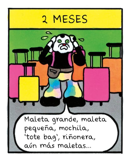 En esta ocasión, ha creado para El Viajero un cómic sobre esa tarea aparentemente tan simple, pero a veces tan estresante, que es la de preparar el equipaje antes de empezar un viaje. “Una de las cosas que más odio en el mundo es hacer y deshacer maletas. Muchas veces las hago una hora antes de salir de casa, porque si no me eternizo, y puedo tardar muchísimo en decidir qué llevarme. Me parecía divertido hacer una parodia de ese momento, llevándolo al extremo”, asegura.