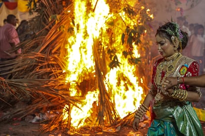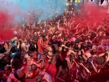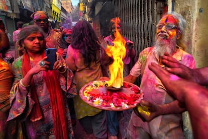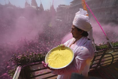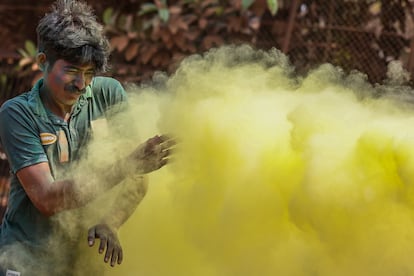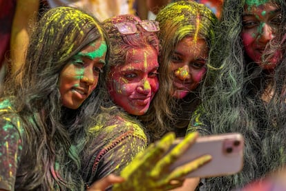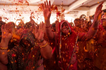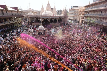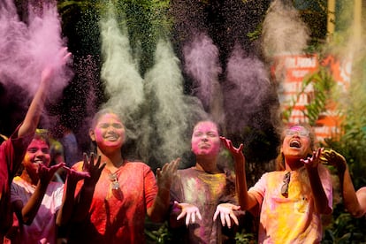 Millones de personas están celebrando en la India el festival Holi, conocido también como el festival de los colores (por motivos obvios). En la imagen, una de las batallas de polvo de colores y agua en Loknath Prayagraj.Rajesh Kumar Singh (AP)Este festival celebra, según el hinduismo, la victoria del bien sobre el mal y también el fin del invierno. En la imagen, un hombre lanza polvo de colores en el templo Kalupur Swaminarayan, en Ahmedabad.Ajit Solanki (AP)Centenares de personas se reunieron en el templo Kalupur Swaminarayan, en Ahmedabad, para celebrar el Holi.Ajit Solanki (AP)Además del polvo de colores y el agua, las flores también son protagonistas de una jornada dedicada también a olvidar los errores del pasado y perdonar deudas. En la imagen, la celebración dentro de un templo en Ahmedabad.Amit Dave (REUTERS)La religiosa hindú también está repleta de cantos y bailes. Una tradición que, según los estudiosos y sin que haya datos que lo puedan acreditar, se remonta muchos siglos atrás; incluso hay poemas del siglo IV donde ya se citan estas celebraciones. En la imagen, el festival Holi en un templo de Ahmedabad.Amit Dave (REUTERS)Esta es una festividad que rinde culto al dios hindú Visnú, pero a menudo el significado religioso queda en un segundo plano por detrás de la diversión. Las calles y las personas se tiñen de rojos, verdes, amarillos, rosas o azules. En la imagen, una mujer participa en el festival Holi en la ciudad india de Hyderabad.Mahesh Kumar A. (AP)El festival suele celebrarse entre finales de febrero y mediados de marzo. No tiene una fecha concreta, pues esta la marca la última Luna llena del mes lunar hindú Phalguna, el undécimo de su calendario (por eso este 2026 se celebra el 3 y 4 de marzo). En la imagen, participantes del Holi Festival en Hyderabad.Mahesh Kumar A. (AP)Lo más habitual es que los pigmentos de colores que se utilizan estén hechos de una mezcla de harina de maíz y colorantes llamada ‘gulal’. En la imagen, un participante en la celebración del festival Holi en Bombai.DIVYAKANT SOLANKI (EFE)Varias de las participantes en el festival Holi de Bombai se toman un selfi impregnadas de colores —lo aportan pigmentos orgánicos, como flores de caléndula, rosas, hibisco azul y rojo, cúrcuma e incluso hojas de espinaca—.DIVYAKANT SOLANKI (EFE)El Holi es uno de los festivales más vibrantes en el calendario cultural de la India, y en él se rompen también las barreras sociales entre ricos y pobres o entre hombres y mujeres. En la imagen, la celebración en Bombai.