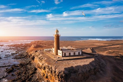 Guiados también por el viento, atravesamos la agreste Cofete hasta el faro histórico de Jandía, construido en 1864. Esta playa de unos 14 kilómetros que Alberto Vázquez-Figueroa describió en su novela Fuerteventura como “la más larga, hermosa, bravía y solitaria que hubiese visto nunca”, sirvió también de escenario para la película Exodus: dioses y reyes (2014), de Ridley Scott. Eso sí, cualquier lugareño al que pida indicaciones no tardará en desaconsejar el baño por el oleaje y las aguas bravas, además de la ausencia de socorristas.