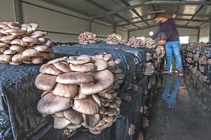 A sanas y ligeras, con las verduras de Calahorra solo pueden competir las setas que brotan en Pradejón, a 11 kilómetros al oeste de la ciudad. Este pueblo es el mayor productor de setas cultivadas de España, fundamentalmente champiñones, lo que le ha valido el apelativo de “villa champiñón”. Pero también setas de ostra, exóticos shiitakes y las codiciadísimas setas de cardo (Pleurotus eryngii), especie esta última por la que penan y suspiran cada primavera muchos buscadores en los prados de España, sin saber que aquí se obtienen artificiosamente ejemplares rollizos, lustrosos, perfectos.