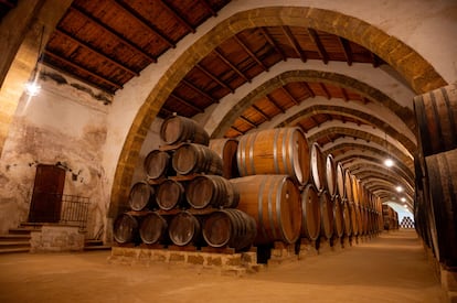 A las afueras del centro, frente al mar, se encuentran las históricas bodegas de la ciudad: Pellegrino, Donnafugata, Florio... En Sicilia, estos nombres tienen tanto de reclamo comercial como mitológico. Los Florio, cuyo apellido vuelve a sonar gracias al éxito de la saga familiar escrita por Stefania Auci, comenzaron como farmacéuticos en Palermo antes de convertirse en magnates de la isla. Con una graduación de entorno al 19%, no es de extrañar que, cuando los sicilianos tomaron el negocio —que habían iniciado comerciantes británicos tratando de imitar Jerez u Oporto—, lo vendieran con el lema “Ristora, rinfranca, rinforza” (restaura, refresca, refuerza). El logo de la marca sigue siendo un león enfermo que se cura al beber este vino con denominación de origen, que al envejecer puede adquirir un singular tono caoba. La bodega donde se conservan los enormes y centenarios toneles se puede visitar con guía en inglés o italiano. Su imponente nave recuerda a la de una iglesia.