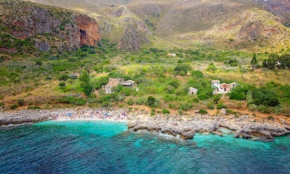Entre Trapani y Scopello descubriremos playas fabulosas en un paisaje que se mantiene sorprendentemente bien preservado frente al avance del urbanismo. En Bonagia las calas son tan pequeñas que apenas cabe en ellas una familia entera. El paisaje es fantástico en Río Forgia o Macari, playas alternativas a San Vito Lo Capo, cuyo centro se encuentra buena parte del año saturado y cubierto de tumbonas privadas. Si busca comodidad, quédese; si no, vuelva hacia Macari o al sur, rumbo a la Riserva Naturale dello Zingaro. Las casas son bajas y no bloquean la panorámica con el monte Monaco al fondo. Los más aventureros disfrutarán de la reserva: siete kilómetros de costa virgen entre acantilados de piedra caliza. Se puede entrar por el norte, por San Vito, o por Scopello, al sur, y adaptar el recorrido a la ambición o condición física de cada uno para disfrutar de la ruta y de alguna de sus siete calas. No hay coches, ni bares, ni cobertura: solo un mar turquesa y el eco del Mediterráneo.