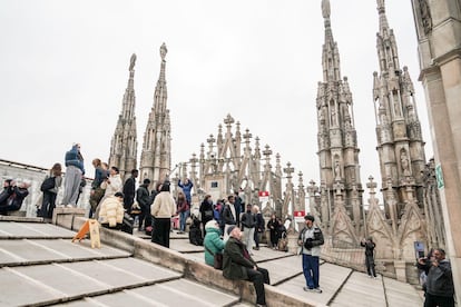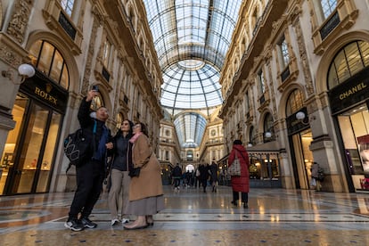 Una película de éxito, El diablo viste de Prada (2006), sirvió para certificar y divulgar que Milán es capital de la moda. La tienda original abierta por Mario Prada en 1913 sigue tal cual dentro de la Galleria Vittorio Emanuele II, “el salón de Milán”. Un icono modernista del siglo XIX obligado para el turista, pero también para el milanés que va a comprar ropa, libros o joyas, o a tomarse un café. Y obligado, sobre todo, para quienes quieran tener los techos acristalados y los suelos de mosaicos coloristas como fondo para selfis, fotos de grupo y fotos de boda —hay parejas de novios haciendo cola—. Otra película más antigua, Borsalino (1969), puso de moda los sombreros de la tienda así llamada de Corso Venezia.