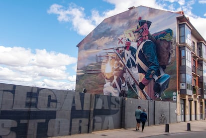 En la fachada lateral de una casa de Astorga, David Esteban, conocido artísticamente como Da2.0, inmortalizó a unos soldados de la artillería española que combatieron contra Napoleón en la Guerra de la Independencia y, más en concreto, el combate librado en la ciudad leonesa a finales de 1808. Aúna tradición, arte e historia. Es el más llamativo, pero no el único mural de Astorga, que con sus espectaculares obras saluda a los peregrinos. Por ejemplo, la imagen de Octavio Augusto, Gaudí y unas botas peregrinas se unen a otros sobre la Semana Santa, Charles Chaplin, Astures y Romanos, la cecina o las mantecadas. La aspiración de Astorga es transformarse en una galería al aire libre que muestre la esencia de la ciudad, a modo de bienvenida original.