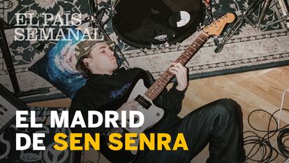 Parece como si no estuviese, pero está al tanto de todo. Sen Senra está sentado en uno de los sofás del local de ensayo. Consulta el móvil tranquilamente, como si disimulara y escondido bajo un gorro pescador de color camuflaje y unas gafas de cristal amarillo. Ataviado con una sudadera y pantalones deportivos, se muestra relajado, sin llamar la atención. Da la sensación de que nada tuviese que ver con él y, sin embargo, controla cada detalle de lo que pasa. Acepta las indicaciones para posar para las fotografías, pero él mismo decide cómo colocarse y con qué gesto. Maneja perfectamente su imagen. Siempre con un perfil serio, entre la intensidad y la melancolía. Da la impresión de que es en ese punto justo donde reside el secreto de su éxito. El secreto de sus canciones, que se han abierto paso con fuerza en el pop español desde que en 2019 publicó Sensaciones, un disco que hizo despuntar a un artista difícilmente clasificable, un hábil y joven mezclador de trap, trip-hop y electrónica con mucho carácter pop que sabe enganchar a los oyentes de su generación, pero también a los mayores que él. A sus 26 años, el cantante y compositor publica el 26 de marzo Corazón cromado, un trabajo que cuenta con la colaboración de C. Tangana, la gran estrella del momento, y con el que aspira a ser una de las voces con mayor proyección de la música española.