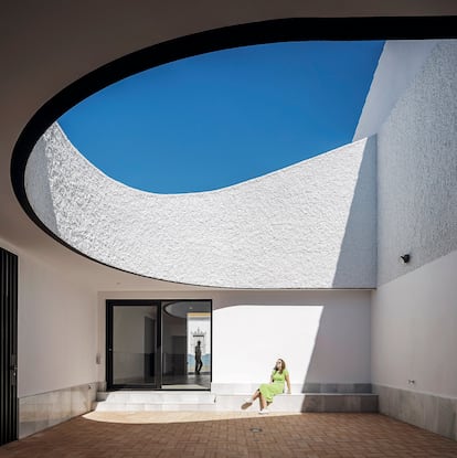 La vivienda cumple con todos los requisitos de una casa arquetípica de la zona, pero a la vez manifiesta su carácter contemporáneo con vehemencia. Tiene un patio andaluz, pero su abertura semicircular al cielo ofrece una experiencia espacial única. Es de una planta y con techos altos, pero sus interiores, aun incluyendo acabados clásicos, están en las antípodas de una casa tradicional. Los arquitectos tienen en este momento cinco encargos parecidos fruto de la pandemia.