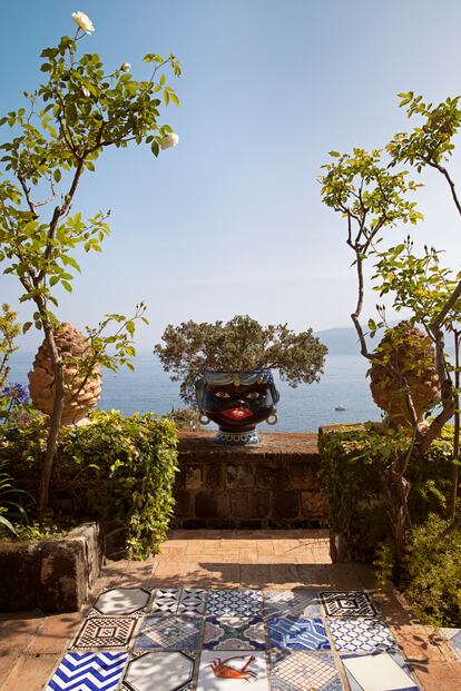 Marco De Luca no es solo el propietario y el diseñador del hotel, también vive en él. “Mi abuelo era de Sorrento. Tenía un hotel llamado La Minerva en la parte más alta del acantilado. Cuando se casó con mi abuela, que era danesa, decidieron abrir un restaurante más abajo: La Minervetta. El hotel de mi abuelo ya no pertenece a mi familia, pero mi madre heredó el restaurante. Fui yo quien lo convirtió en un hotel hace 18 años. Estaba en muy mal estado, porque mi madre había cedido su gestión a personas ajenas a la familia durante muchos años. Así que transformé todo por dentro y por fuera, con la idea de que se convirtiera en un hotel, pero también en mi casa. No fue sencillo… Es más fácil diseñar para otros”, reflexiona.