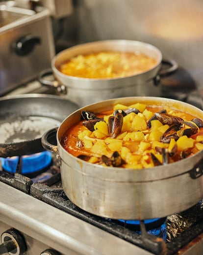 Son las diez de la mañana y Marc Miñarro entra y sale de la cocina de la Bodega Montferry, en el barrio barcelonés de Sants, repartiendo raciones de lo que considera una de las bases del desayuno de tenedor (esmorzar de forquilla). “Un guiso en plato hondo o cazuela de barro que pida cuchara, tenedor y cuchillo, una buena ración de pan para mojarlo y tiempo para disfrutar uno de esos almuerzos largos que parecen una comida”.
