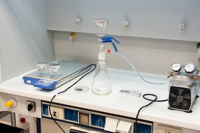 En los laboratorios de la Facultad, todo el material que se usa debe ser de cristal o de metal. Cada vaso y matraz se tapa con papel de aluminio para que dentro no caiga ninguna fibra de microplástico. Cada investigador está obligado a usar batas de algodón. “Es que el plástico está por todas partes”, explica Francisca Fernández Piñas, catedrática de la Universidad Autónoma de Madrid y supervisora del trabajo de Núñez. El plástico es invisible y omnipresente. Y más en los interiores que en los exteriores. Un estudio reciente publicado por la Universidad de Toulouse determinó que cada día respiramos 68.000 microplásticos en nuestra casa y en nuestros coches. Ambos ambientes son como cajas de plástico llenas de alfombras de poliéster, sofás recubiertos de tela sintética, suelo de linóleo o pintura acrílica en las paredes. “Es un nuevo hábitat y se llama plastisfera”, explica Fernández, y prosigue: “Es como si fuera ya algo natural en el planeta porque está en todas partes”.