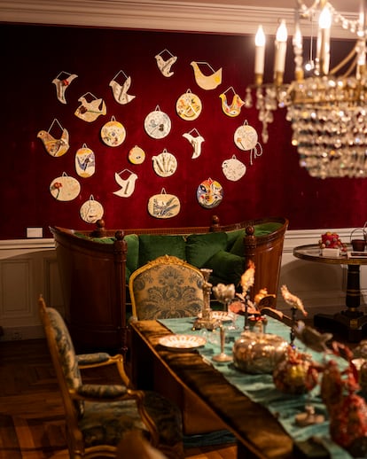 Marella Rossi (Hauts-de-Seine, 52 años) camina con prisa sobre los magníficos suelos de madera de Aveline, la galería de antigüedades de París que tiene los mejores muebles del siglo XVIII francés. De vez en cuando se vuelve para comprobar que la sigo o para hacerle una gracia a Gigie, su perrita, o para responder las tres o cuatro preguntas que le lanzan al mismo tiempo desde todas las esquinas del palacete. No es el mejor día para verla, esta noche inaugura la 23ª edición de Chambres à part para Art Basel, cuya curadora es la artista Laurence Dreyfus, es mediodía y aún le queda mucho por hacer. En las dos plantas de Aveline se instalan luces y se mueven de sitio objetos muy valiosos… “Si está la jefa se supone que tiene solución para todo y a veces no es así”, me dice en voz baja. Marella tiene una palabra amable para todos, reparte bonjours y mercis, pero no se desvía de su objetivo: llegar al único lugar donde podemos hablar un rato, su despacho. Más bien el de su padre, Jean-Marie Rossi, el decano de los anticuarios de París, fallecido en 2021 y que en España es conocido por su matrimonio con Carmen Martínez-Bordiú.