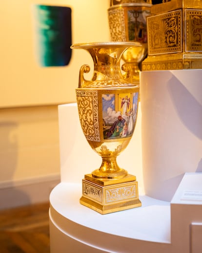 Marella es la gran sucesora de su padre. En 1999, con 26 años, empezó a trabajar en Aveline y se convirtió en una anticuaria en un mundo de hombres. “Me salvó medir 1,80 —y eleva al cielo las gracias a su abuela paterna, que medía dos metros—, aun así me ponía tacones”. Marella era joven pero tenía un título de Bellas Artes de la Sorbona, un curso en Christie’s y había estudiado en el Louvre y en el palacio de Versalles. Además, traía el ojo educado de serie. “Desde los cinco años mi padre nos recogía en la escuela a mí y a Mathilda, nos compraba un bollo en la pastelería de enfrente y nos llevaba a las subastas del Hotel Drouot, entrábamos a una habitación y nos decía: ‘Tenéis un segundo para identificar la pieza más valiosa de esta sala’. Aprendimos mucho gracias a ese juego”. Entonces Marella salta a otro tema, el divorcio de sus padres y los tres matrimonios de Jean-Marie con sus respectivas proles. “Es una familia de locos”, dice. Todos están en un grupo de WhatsApp.