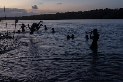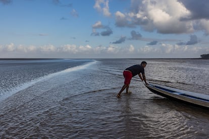 “Para nosotros, el petróleo significa una luz al final del túnel”, explica Ozeas Maciel, de 45 años, presidente de la cofradía de pescadores y el piloto de lancha más avezado de la zona, mientras se mece en una hamaca a la espera de que amaine el calor abrasador. Solo entonces recobra la vida la aldea. “Sabemos que con el petróleo vendría una riqueza inmensa, una posibilidad de desarrollo, porque aquí no hay ninguna esperanza de tener una industria o buenos empleos”.