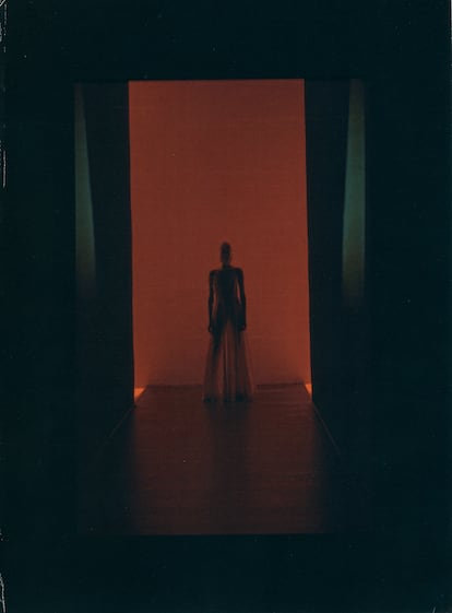 Para Sabroso, la recuperación de su figura es pertinente porque encapsula algo que se está perdiendo en la moda. “La idea de la exclusividad artística se ha ido deteriorando. Por eso, la imagen de David Delfín adquiere fuerza. Posiblemente desde Sybilla o Alvarado no haya habido un diseñador en España con un universo propio tan sólido e identificable. El tiempo lo destruye todo, pero los auténticos creadores siempre encuentran un lugar en la memoria”. El de David Delfín se encuentra suspendido en un abrazo eterno con Bimba Bosé.