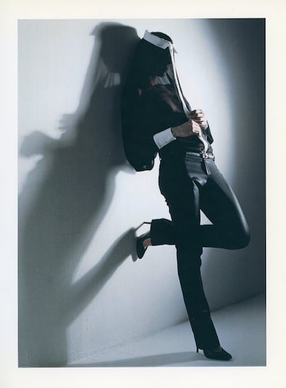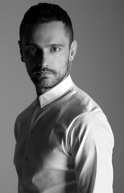 El coreógrafo y director de escena Dani Pannullo se topó con ese tardoadolescente trabajando en una óptica. “Estaba de paso por Marbella y di con los modernos del pueblo. Él ya tenía luz propia. Se vino meses después a Madrid para trabajar conmigo. Quería ser actor”. Nota para fans: búsquenlo en su pequeñísimo papel como travesti en Todos a la cárcel (1993), de Berlanga. Pannullo lo catapultó como uno de los club kids del House of Devotion, la fiesta semanal del Morocco de Alaska, donde Delfín hacía playbacks y bailaba junto a otras figuras, como la actriz Lluvia Rojo, el presentador Johann Wald o el actor Pedro Pascal. Hoy, está reuniendo financiación para un ballet urbano en su homenaje, titulado Davidelfin. Mi vida anterior, que espera llevar a los Teatros del Canal de Madrid y a La Térmica de Málaga, donde se ha creado un premio bienal David Delfín para talentos en moda. La reivindicación se redondea estos días con una exposición en el Patio Herreriano de Valladolid que reúne casi 200 piezas, entre indumentaria y colaboraciones. Puede verse hasta el 11 de enero de 2026, y la idea es que llegue a Madrid y Barcelona.