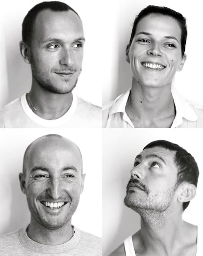 A Gorka Postigo, que sería pareja y socio de David durante una década, le gusta pensarlos fundidos en otra dimensión. “Jamás se separaron. David dijo que Bimba abriría y cerraría siempre sus desfiles, y así fue. Tuvieron una simbiosis creativa muy fuerte y una sincronización vital: cuando se fue el uno, se fue el otro. Los que vivimos esa generación del salto de siglo entendemos que contribuyó a abrir una etapa importante: entendió esa transición de lo analógico a lo digital, de lo local a lo global”. Gorka aportó sus conocimientos en fotografía; su hermana Deborah, salida del máster de EL PAÍS, se hizo cargo de la comunicación. Los cinco afrontarían un vertiginoso salto del underground a la primera plana con la polémica del primer desfile en Ifema en 2002, donde las modelos encapuchadas y con sogas al cuello tropezaban en la pasarela. Las referencias a Magritte o Buñuel fueron sustituidas en los noticiarios, aún bajo el influjo del 11-S, por connotaciones a los burkas y al maltrato a la mujer. Pasado el escándalo, el viento giró a su favor. La siguiente edición ganaron el Premio L’Oréal.
