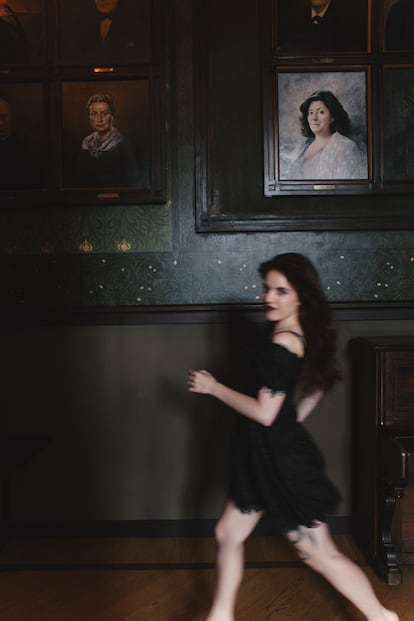La mirada torva de Camilo José Cela parece posarse sobre esta joven de pelo rojo que posa con un vestido gótico tras el que se entrevé un cuerpo tatuado. Los tacones dorados resuenan sobre el parqué de la solemne Galería de Retratos del Ateneo de Madrid, con rostros de ilustres señores observando a la filósofa, ensayista, cantante de heavy metal y pintora Eloísa de Castro (Madrid, 28 años). Entre los cuadros, el de la rebelde filósofa María Zambrano, única dama rodeada de 28 varones. Ella es faro intelectual para De Castro. “¿Acaso no soy libre para sentir? ¿Acaso no soy luz para vivir?”, entona la artista, de sangre burgalesa, en su canción María Zambrano, Ordo Amoris. De Castro recoge el legado intelectual de la malagueña para trasladarlo a un gineceo musical donde reúne a pensadoras ignoradas por sus coetáneos y olvidadas por la historia. Lo hace mediante el heavy metal, género difícil para el profano, pero vehículo utilizado para la filosofía o la ética, la mitología o la historia. El suyo es un ejercicio a contracorriente en tiempos de altavoces escupiendo versos sobre quién tiene el coche o el culo más grande.