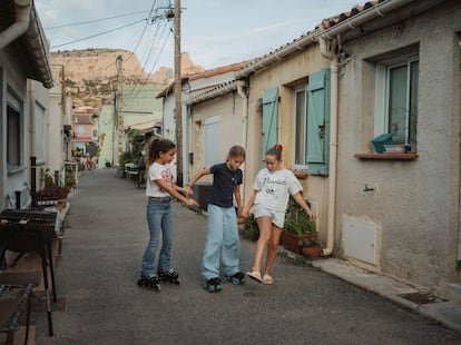 El arte de vivir a la marsellesa, bandera de la zona, fue en parte lo que le atrajo de una vida que en nada se parece a la que lleva en París gestionando mudanzas: “Lo que me gusta de aquí es la espontaneidad y la solidaridad: pasas por delante de una casa, te invitan a un pastís y charlas sobre cualquier cosa. Es un sitio donde todavía puedes dejar las llaves a un vecino o pedirle que te riegue las plantas. Eso es para mí el modo de vida marsellés: la ayuda mutua y la vida al aire libre”. Rigal no oculta cierta nostalgia por la rápida transformación del pueblo, en el que espera jubilarse: “No es el fin todavía, pero temo que en unos 10 años sí lo sea, salvo que los nuevos vecinos logren mantener viva esta forma de vida. Hoy, entre antiguos y recién llegados, hay algunos puentes, pero no muchos; aun así, siento que hay cada vez más gente comprometida con la naturaleza y con preservar la solidaridad”. Al caer la noche, los vecinos de la calle Louvre se echan a la calle, recordando la vida que antaño fue común en Les Goudes: pastís al atardecer, charlas en las puertas de las casas, niños correteando y vecinos jugando a la petanca. Nathalie Albentosa, que gestiona algunos alquileres vacacionales, saca las patatas fritas y el vino mientras observa a las hijas de los vecinos patinar. Ella compró en 2011 el cabanon de 60 metros cuadrados en el que vivían sus padres por 140.000 euros; ellos lo adquirieron unos 40 años antes por 22.000 euros. Ahora, tasado en 500.000 euros, ha pasado a verlo como una inversión familiar, un seguro para el futuro de sus hijos.