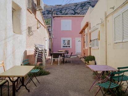 Hoy, la historia de estas casitas está viviendo sus últimos momentos. El turismo supera ya los niveles previos a la pandemia y ha atraído a nuevos vecinos, mayoritariamente de la región parisiense y con más recursos, aunque también extranjeros. Anni Woelh, de 39 años, lleva tres años viviendo en Les Goudes. “Vine por primera vez a Marsella buscando un lugar en el Mediterráneo al que pudiera llegar en tren. Me enamoré de la ciudad y volví una y otra vez”. Original de Hamburgo, trabaja a distancia para su propia empresa de reciclaje y aprovecha los descansos para darse un paseo junto al mar. No habla francés, pero eso no le ha impedido trabar amistad con un vecino, de 86 años, con el que come a menudo. El resto de su círculo son extranjeros. “Para mí, como alemana, a veces es demasiado que todo el mundo quiera hablar conmigo. Aquí la gente tiene mucho tiempo para charlar”. Venía con la ambición de encontrar una vida más tranquila y reconoce que pasa la mayor parte del día trabajando en su cabanon, de unos 40 metros cuadrados, el tamaño medio de estas casitas.