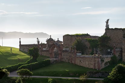 Es entonces cuando las necrópolis comienzan a erigirse en “museos al aire libre”, explica la historiadora, haciendo suya la expresión de su colega francés Philippe Ariès. No hay estilo artístico que se resista a entrar en un camposanto. “Tenemos prácticamente todos los modelos que se van a dar en el momento: desde el neoclasicismo, que aporta la fuerza, la severidad o el raciocinio ante la muerte, al neogótico o al neorrománico, donde está más presente la ideología religiosa y la fuerza de Dios”. El último en cruzar las puertas fue el modernismo, un gusto que impregna la penúltima parada de esta ruta que persigue la creación artística en los enterramientos del norte del país. A la villa de Comillas llegó Lluís Domènech i Montaner en los últimos compases del siglo XIX con el encargo de construir (como hizo) uno de los espacios funerarios más sorprendentes de la fachada cántabra. Desde una colina, aprovechando las ruinas de una iglesia gótica, el cementerio observa el mar y el reguero de peregrinos que se citan aquí arriba con el diseño modernista del arquitecto catalán, coronado por las sugerentes esculturas de líneas curvas de su paisano Josep Llimona.