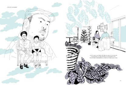 Quise trabajar con mis historias familiares. Pensé en hacerlo con videoinstalaciones. Pero como no tenía dinero, dibujé Le chant de mon père [la canción de mi padre]. Cuenta que vivíamos en un pueblo y nos mudamos a la periferia de Seúl. Mi padre era muy respetado en el pueblo porque cantaba pansori, uno de los cantos tradicionales más admirados en Corea. No era profesional. Le buscaban para que cantara en fiestas. Y en la ciudad…