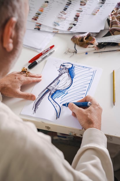 En una industria entrenada para acelerar, siguen urdiendo sus creaciones a la velocidad que marca la creatividad, no la lógica comercial de escalabilidad que ha roto el lujo. “Hoy es complicado conciliar la perfección con los plazos. Y yo soy un perfeccionista. Obsesivo-compulsivo. Es mi punto débil”, dice el sorrentino. “Esta velocidad es contraproducente para la creatividad”. Su proceso es otro. “La creación del tejido y el color y la idea de la prenda avanzan paralelamente, muchas veces cruzándose”.