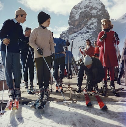 Destino alpino favorecido en principio por la élite británica a finales del siglo XIX y principios del XX, refugio montañés de Ernest Hemingway en los años veinte (el relato Fuera de temporada lo escribió allí), primera escuela de esquí italiana reconocida (en 1933) y sede del Campeonato Mundial de Esquí Alpino en 1941, Cortina fue redescubierta oficialmente para el resto del planeta en 1956, la primera vez que la competición olímpica invernal se retransmitía por televisión (el idílico pueblo del soleado valle d’Ampezzo ya había sido elegido para acogerla en 1944, pero la Segunda Guerra Mundial truncó entonces la celebración). Y, a partir de ahí, el delirio internacional en aras de aquella jet set que se daba a la dolce vita en la Italia del boom económico de posguerra. De las primeras en llegar un par de años después, tratando de escapar de la fama sobrevenida como bomba sexual, Brigitte Bardot arrastró tras de sí una tropa de paparazis que la inmortalizó juguetona en la nieve, sentando estilosa cátedra. Después fueron desfilando Elizabeth Taylor y Richard Burton, Alain Delon y Romy Schneider, Helmut Berger y Faye Dunaway, Frank Sinatra (el fabuloso hotel Cristallo Palace le dedicó una suite) y Sophia Loren, Charlton Heston y Audrey Hepburn, de asueto o para rodar sus películas. La primera y ampezzanamente canónica, La pantera rosa, de Blake Edwards (1963), con Claudia Cardinale y Capucine derrochando glamour peletero por Corso Italia. Cuando Roger Moore y Carole Bouquet rodaron el Bond de Solo para sus ojos, en 1981, con el olímpico Palacio de Hielo y el Trampolino como escenarios de tanta acción sofisticada, la villa ya pasaba por ser la más chic de las estaciones alpinas, al menos en términos de código de vestimenta. Mantener el tipo de lujosa discreción en tiempos de celebridad digital gritona —a veces hasta histérica— es ahora el reto.
