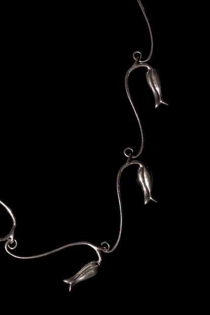 Mientras vamos de camino a Valjunquera, Ágatha le llama por teléfono. Aunque han pasado muchos años, siguen en contacto. “Ella supervisaba todo, pero, cuando vio que lo había pillado, me dejó ir solo. Aparte, me llamaba también para los desfiles. Me enviaba los vestidos y yo le hacía las joyas”, recuerda. “Este tipo de trabajo consistía en trasladar el ADN del diseñador y de la marca a plata, oro o bisutería. Hay que entender muy bien la personalidad del creador para que las piezas queden a la altura de la ropa. Me lo pasaba bomba”.