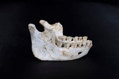 Una joya que ha atravesado los siglos, incluso los milenios, sin sufrir grandes daños. Se trata, pues, de un objeto humilde y monumental a la vez, un puente entre la carne y la piedra. En su superficie cuarteada se puede leer una biografía sin palabras: hambre, masticación, desgaste, silencio…