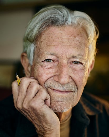 Entrar en la vivienda-estudio de Joaquim Aubert Puigarnau —Kim por su nombre de guerra— en el Eixample barcelonés es ir a parar a una babilonia multicolor de viñetas, papelotes, libros, cuadros, lápices, pinceles y cachivaches varios. Ahí el retrato de dos putas en un portal del Barrio Chino, al lado una pintura del histórico Café Zurich de plaza de Cataluña, enfrente una cama encajada entre estanterías, al fondo la terracita con vistas a la catedral, la Torre Agbar y el patio de un colegio, al lado el ‘minúsculo’ estudio de trabajo con la mesa inclinada. Y en un recodo… un cartel de la Legión y una carta dedicada desde la cárcel por el teniente coronel Antonio Tejero Molina-quieto-todo-el-mundo (no se alarmen, Tejero, como otros paladines y simpatizantes del fascismo celtibérico, acabó amando a Kim gracias a su personaje-fetiche de Martínez el Facha, parido en las páginas del semanario El Jueves en 1977, los designios del Señor son, ya se sabe, inescrutables). Y, por supuesto, revistas y revistas, y carpetas y carpetas apiladas llenas de las ilustraciones que este barcelonés de 84 años hizo para combativas y transgresoras publicaciones del posfranquismo, de Vibraciones a Por Favor y de Mata Ratos a Rambla, Makoki… y, claro está, El Jueves, de la que fue miembro fundador.