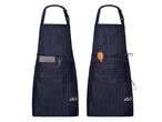 Este par de delantales cuenta con dos bolsillos amplios en su zona delantera y correas ajustables en el cuello y la cintura