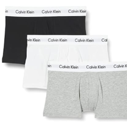 Tampoco pueden faltar en un armario masculino unos calzoncillos con los tres clásicos tonos por antonomasia en el mundo de la ropa interior: negro, blanco y gris. Este lote, de la marca Calvin Klein, los aglutina en su colección Cotton Stretch y se encuentran a la venta en tallas de la S a la XXL. Reúnen más de 25.000 valoraciones en Amazon.