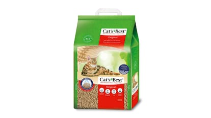 Limpia de manera eficaz la orina y suciedad de los gatos con esta arena aglomerante hecha de fibra vegetal de madera activa 100% pura, con propiedades que facilitan la recogida de los desperdicios, evitan los olores no deseados y absorben los desechos en muy poco tiempo. En Amazon supera las 7.000 valoraciones y su puntuación es de 4,4 sobre 5.