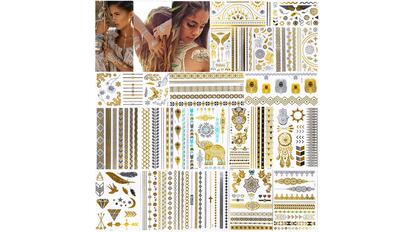 Disponibles en más de 200 diseños (incluyendo plumas, collares, pulseras, mariposas o signos tribales, entre otros muchos), estos tatuajes tienen un diseño metálico muy brillante y que durará días sobre la piel, al ser resistentes al sudor y al agua. Además, se pueden pegar, incluso, en el cabello y combinarse entre sí.