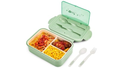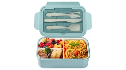 Al igual que el modelo ganador de la comparativa, el tupper con compartimentos Bibury tiene un cierre formado por cuatro seguros que evita cualquier derrame. Cuenta con tres divisiones de fácil acceso, pero en caso de caída se puede abrir la tapa superior de los cubiertos.