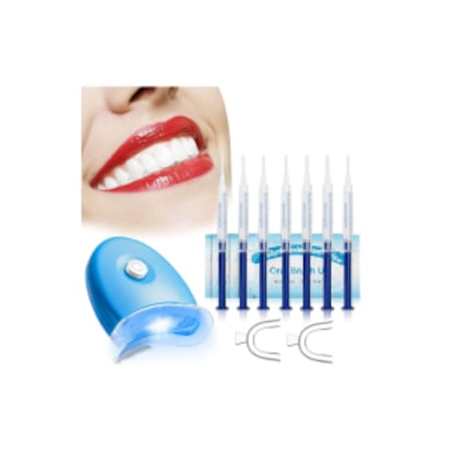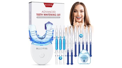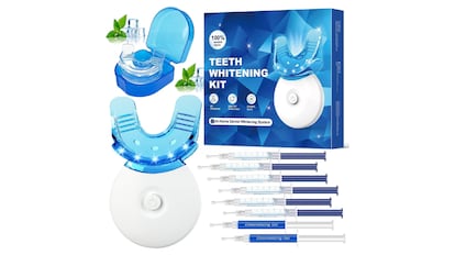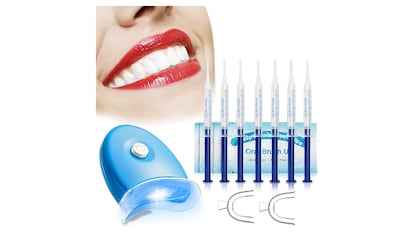 Por qué lo recomendamos: este kit viene con dos moldes, un dispositivo de luz LED, 10 jeringuillas con el blanqueante, un medidor de tonos, unas toallitas dentales y un manual de instrucciones en español. Esto último me pareció fundamental para aprender a utilizarlo, sobre todo las primeras veces. El fabricante recomienda utilizarlo al menos durante 15 días para obtener unos mejores resultados. Lo primero que hay que hacer es adaptar el molde a tu dentadura. Primero hay que pasarlo por agua caliente para que ablande e introducirlo en la boca durante unos segundos para que coja la forma de los dientes. Después, hay que sumergirlo en agua fría unos segundos para que mantenga la forma de los dientes y recortar la parte del molde que sobre. Una vez realizado estos pasos, tan solo hay que echar una pequeña gota de blanqueamiento en el molde (no más de 0,5 mililitros cada vez que se utiliza) y hacer fuerza con la dentadura para que llegue a todos los dientes. Luego tan solo hay que encender el aparato de luz LED, que funciona a pilas, y acercarlo a la boca durante unos 20 minutos. Con el paso de los días, lo fui aumentando hasta 45 minutos. El gel, por su parte, dura muchísimo porque tan solo hay que echar un poquito para que llegue a todos los dientes.