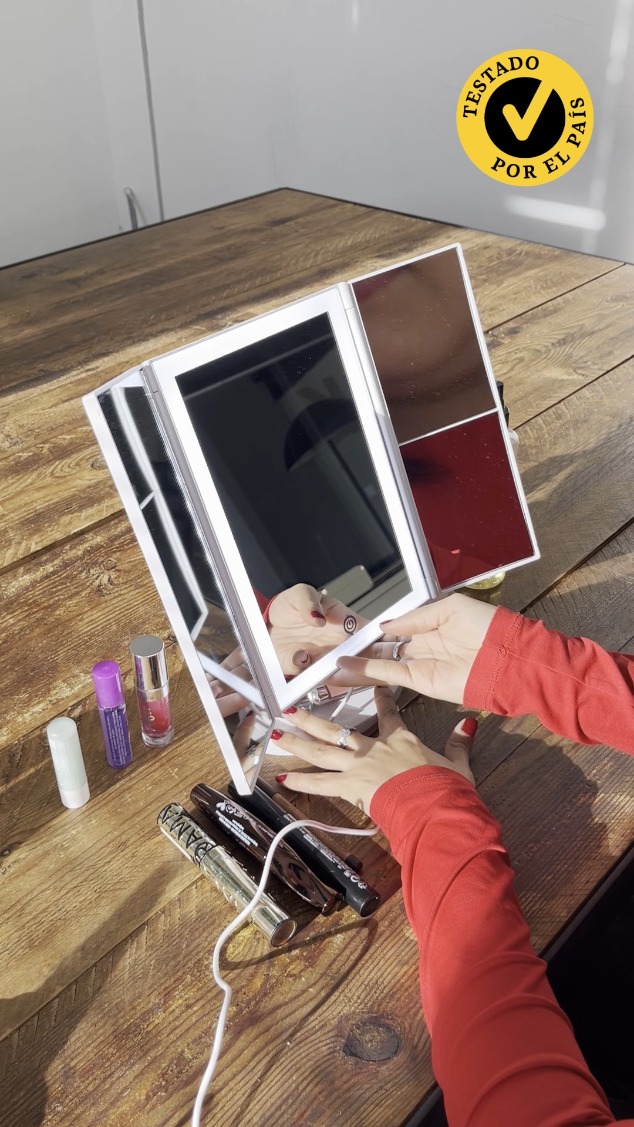 El espejo para maquillaje Weily es muy similar a los dos modelos anteriormente analizados; la diferencias es que está disponible en más colores que, a nuestro parecer, le dan un plus estético. Asimismo, tiene mayores dimensiones de ancho y largo, y dispone de un diseño tríptico que puede ajustarse en cualquier ángulo de 180 grados.