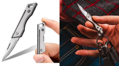 Este accesorio multiusos incorpora una hoja de acero muy resistente, gracias a la aleación de aluminio empleado, ofreciendo un corte preciso para cualquier tarea de corte doméstico. Resulta ideal para llevarla encima o de viaje al pesar menos de diez gramos. Resulta igual de práctica que otros gadgets que hemos mencionado en EL PAÍS Escaparate como las navajas para recoger setas, la navaja suiza más vendida o el pack de cúter y navaja.