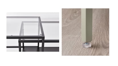 El diseño minimalista, que combina metal, vidrio y madera, y sus materiales transparentes permiten que la luz circule, creando sensación de amplitud, así como un estilo sofisticado, pero acogedor. Su formato invita a la experimentación con la disposición del mobiliario y la decoración. Pueden colocarse junto al sofá, en un rincón de lectura o incluso como superficie de apoyo.