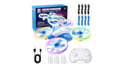 Este mini dron es fácil de manejar y perfecto para principiantes, tanto en interiores como exteriores. Su control remoto sencillo hace que despegar, girar y aterrizar sea accesible incluso para los más jóvenes. Es compacto, ligero y funciona como una introducción ideal al mundo de los drones y la tecnología. Un regalo emocionante que apuesta por la diversión en cada vuelo.