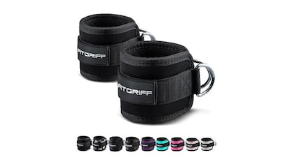 Estas tobilleras están diseñadas para ejercicios en máquinas de poleas y cables, permitiendo trabajar glúteos, abductores, aductores y musculatura de la pierna de forma controlada. Incorporan acolchado interior para mejorar la comodidad durante el movimiento y un sistema de ajuste resistente que asegura una correcta sujeción al tobillo. Son un accesorio habitual en rutinas de fuerza y tonificación, ya que permiten aislar el trabajo muscular y ampliar las opciones de entrenamiento en sala.