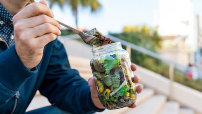 Uno de los propósitos principales cuando pasamos a un año nuevo es el de cambiar la alimentación para mejorarla, no solo por sentirnos mejor cuando nos miramos al espejo, sino por cómo afecta nuestra dieta cada día a la salud de nuestro organismo. Por eso mismo, en EL PAÍS Escaparate siempre buscamos el accesorio idóneo para lograr los objetivos que nos hemos marcado. En este caso, y si eres fan de las ensaladas, has llegado al artículo adecuado. Acabamos de fichar un recipiente para llevar tu ensalada favorita a la oficina sin que ocupe espacio. Además, presenta un 29% de descuento en Amazon.