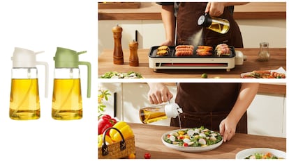 Cada vez es más común ver vídeos en redes sociales sobre “utensilios de Amazon que no sabías que necesitabas”, y uno de los protagonistas de esta tendencia es este set de aceiteras en espay. Un best seller que combina estilo y practicidad para cocinar de manera más saludable. Y lo mejor: ahora está en oferta.