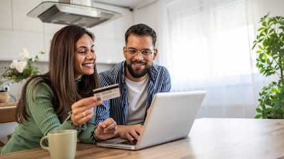 Una pareja comprando por internet desde casa. Milan Markovic (© Getty Images)