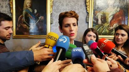 En contra de los mensajes alarmistas de la derecha, España no se ha roto por Navarra en los seis primeros meses de Gobierno de María Chivite. La presidenta de la comunidad foral, investida en agosto gracias a la abstención de cinco de los siete diputados autonómicos de EH Bildu, insiste en que la transferencia de las competencias de Tráfico no implica la salida de la región de la Guardia Civil. “Seguirá trabajando en otras funciones. A nadie se le va a echar", ha afirmado en un desayuno informativo organizado por Europa Press en el que ha recalcado que el instituto armado cuenta con alrededor de 1.500 agentes en Navarra, de los que unos 185 se dedican al área de Tráfico. “La Guardia Civil no se va a ir de Navarra”, ha sentenciado Chivite.