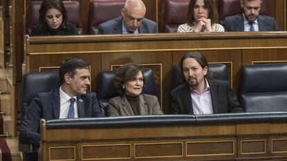 La complejidad para definir la nueva medida ha hecho que esta se posponga a la reforma en la que se establecerán límites de precios a los alquileres. Lo que sí hará el Consejo de Ministros este martes es aprobar la moratoria de los desahucios por impago hipotecario de personas en riesgo de exclusión, una medida que se aprobó por primera vez en 2013 y ya se prorrogó en 2017. La nueva moratoria será de cuatro años, por lo que durará hasta 2024. Después de las tensiones entre Unidas Podemos y la vicepresidenta, Carmen Calvo, por la ley de igualdad sexual, ambas formaciones convocaron una reunión urgente de la comisión de coordinación y allí se acordó tratar de evitar que se repitieran situaciones como la de la última semana. En este sentido, y dada la evidente disputa entre Calvo y Pablo Iglesias, líder de Unidas Podemos, es especialmente significativo que La Moncloa señale expresamente que “la vicepresidenta Carmen Calvo y el vicepresidente Pablo Iglesias han trabajado mano a mano para que este nuevo punto se incorporase al acuerdo de Gobierno entre PSOE y Unidas Podemos”.