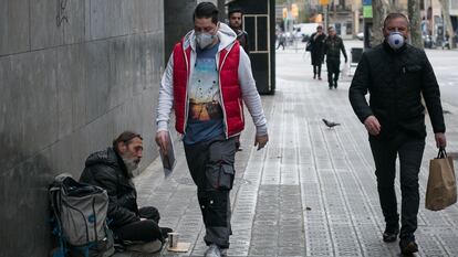 “Siempre notas rechazo, pero estos días era todavía mayor. Nadie se acercaba. Y luego dejó de haber gente por la calle a la que pedir ayuda”, explica Juan Carlos, de 43 años, sin techo. La epidemia y el estado de alarma es difícil para todos, pero especialmente para quienes llevan consigo sus únicas pertenencias. ¿Cómo se encierra para protegerse y proteger a otros alguien que no tiene casa? ¿A quién pide dinero para comer en las calles desiertas? ¿Cómo cumple la recomendación de lavarse con frecuencia las manos quien duerme en la marquesina de un autobús? Es donde ha dormido Juan Carlos, además de en el aeropuerto, hasta que este domingo, la asociación Remar le consiguió plaza en una casa de acogida en Madrid con otras 19 personas, cuatro por habitación.