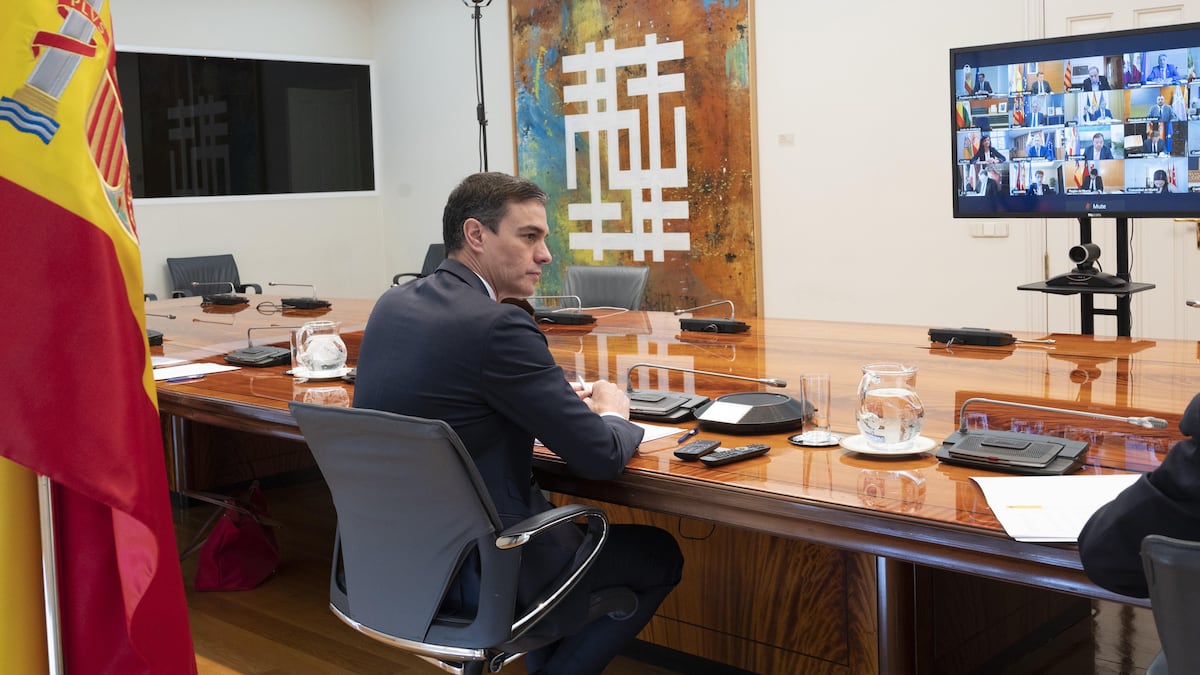 “En esa nueva reedición de los Pactos de la Moncloa, las comunidades autónomas tienen que jugar un papel muy importante. Este no es un problema de uno solo, sino de todos”, afirmó la ministra de Defensa, Margarita Robles, que también participó en la cumbre de presidentes junto al ministro de Sanidad, Salvador Illa; el de Interior, Fernando Grande-Marlaska; y José Luis Ábalos, ministro de Transportes y secretario de Organización del PSOE. Una prueba más de la influencia que las autonomías han adquirido fue la petición de Sánchez a todos los presidentes para que aboguen públicamente por una posición clara y nítida a favor de los eurobonos y la mutualización de la deuda pública, tal y como ha hecho el Gobierno en la Comisión Europea. El Eurogrupo se reúne este martes, una cita que precede a un Consejo Europeo en el que España e Italia insistirán en que la UE abandone la intransigencia económica que abanderan Alemania y Holanda. “Creemos que es el momento de poner en marcha un mecanismo de solidaridad sin precedentes que incluya una cierta mutualización de deuda pública, aunque sea atemporal y limitada. La propuesta del ministro de Economía francés de un fondo temporal y excepcional es una buena base”, afirmó el presidente, según fuentes presentes.
